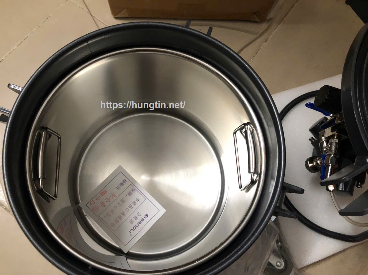 - Xả hết khí bên trong thùng ra ngoài, mở nắp thùng ra nồi lấy thùng lót bên trong ra vệ sinh.