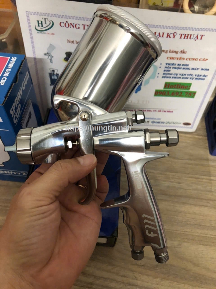 - Súng phun sơn Meiji F111-G10T béc 1.0mm dùng nhiều để phun sơn cho ngành đồ gỗ, phun sơn nội thất, phun sơn xe máy, phun sơn xe ô tô, phun sơn lên kính, phun thực phẩm, phun khuôn, phun ván sàn, phun sơn bao bì, phun sơn ngành nhựa,...