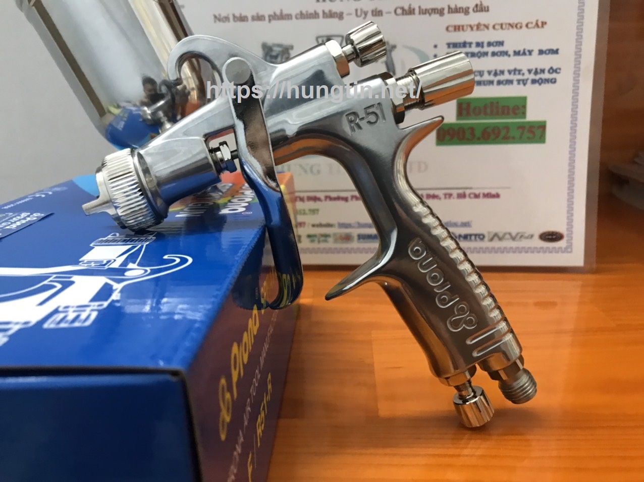 - Súng phun sơn Prona R51-F béc 0.5mm dùng nhiều để phun sơn cho ngành đồ gỗ, phun sơn nội thất, phun sơn xe máy, phun sơn xe ô tô, phun sơn lên kính, phun thực phẩm, phun khuôn, phun ván sàn, phun sơn bao bì, phun sơn ngành nhựa,...